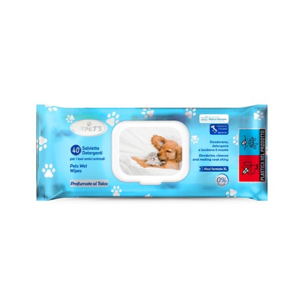 Le salviettine WIPETS create per l’igiene quotidiana dei tuoi amici animali. Sono umidificate con una soluzione senza alcool che deterge, deodora e lucida il manto del tuo animale
