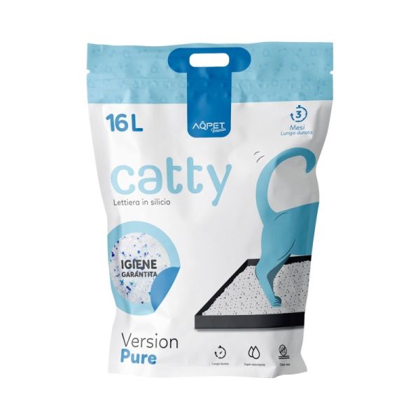 La lettiera Catty Pure, composta da gel di silice, è un prodotto antibatterico, anallergico, naturale, anti-odore e ultra-assorbente. Grazie alla sua naturale struttura chimica, caratterizzata da una spiccata micro-capillarità dei granuli, assorbe i liquidi con i quali entra in contatto. Riesce così a trattenere l'urina e i cattivi odori, evitando la proliferazione dei batteri patogeni negli ambienti circostanti. Grazie all'elevata purezza del materiale ed al basso tenore di polveri, la lettiera Catty garantisce una durata maggiore di assorbimento rispetto alla media. Vi garantisce igiene duratura ed extra morbidezza per proteggere le zampe del vostro animale domestico.