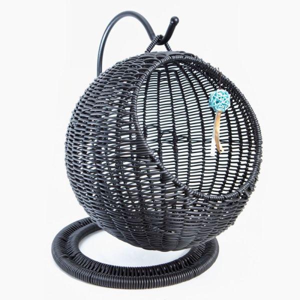 Morfeo è formata da una cuccia sferica rivestita da un pregiato intreccio a mano in rattan, un materiale rinomato per la sua resistenza e durevolezza nel tempo. L'intreccio artigianale conferisce alla cuccia un aspetto unico e sofisticato, rendendola un pezzo di design oltre che un accessorio funzionale per il vostro gatto.