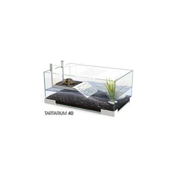 Affinché la tartaruga possa riposare e riscaldarsi, il tartarium 40 ha una zona asciutta alla quale la tartaruga può accedere facilmente attraverso la sua rampa, che può essere posizionata in tre modi diversi avendo un fissaggio facile e armonioso e per evitare che la tartaruga salti un copertina.