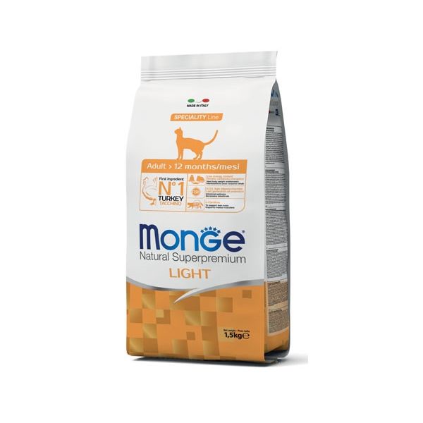 Monge Natural Superpremium Gatto Adulto Light Tacchino è un alimento completo e bilanciato per gatti adulti. Formulato appositamente per favorire il mantenimento del peso corporeo ideale del tuo gatto grazie alla presenza di un ridotto contenuto energetico* e con L-Carnitina per il supporto della massa muscolare.