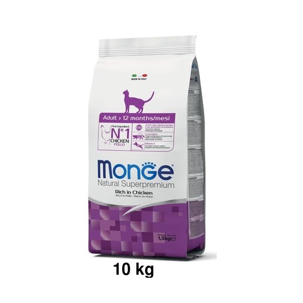 Monge Natural Superpremium Adulto Ricco in Pollo è un alimento completo per gatti adulti.