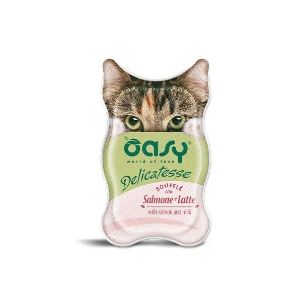 Cremoso alimento umido con Salmone e latte, ideale per gatti che preferiscono consistenze tenere e delicate. La morbidezza del soufflé unita al cuore tenero di bocconcini lo rendono un pasto delizioso e nutriente.